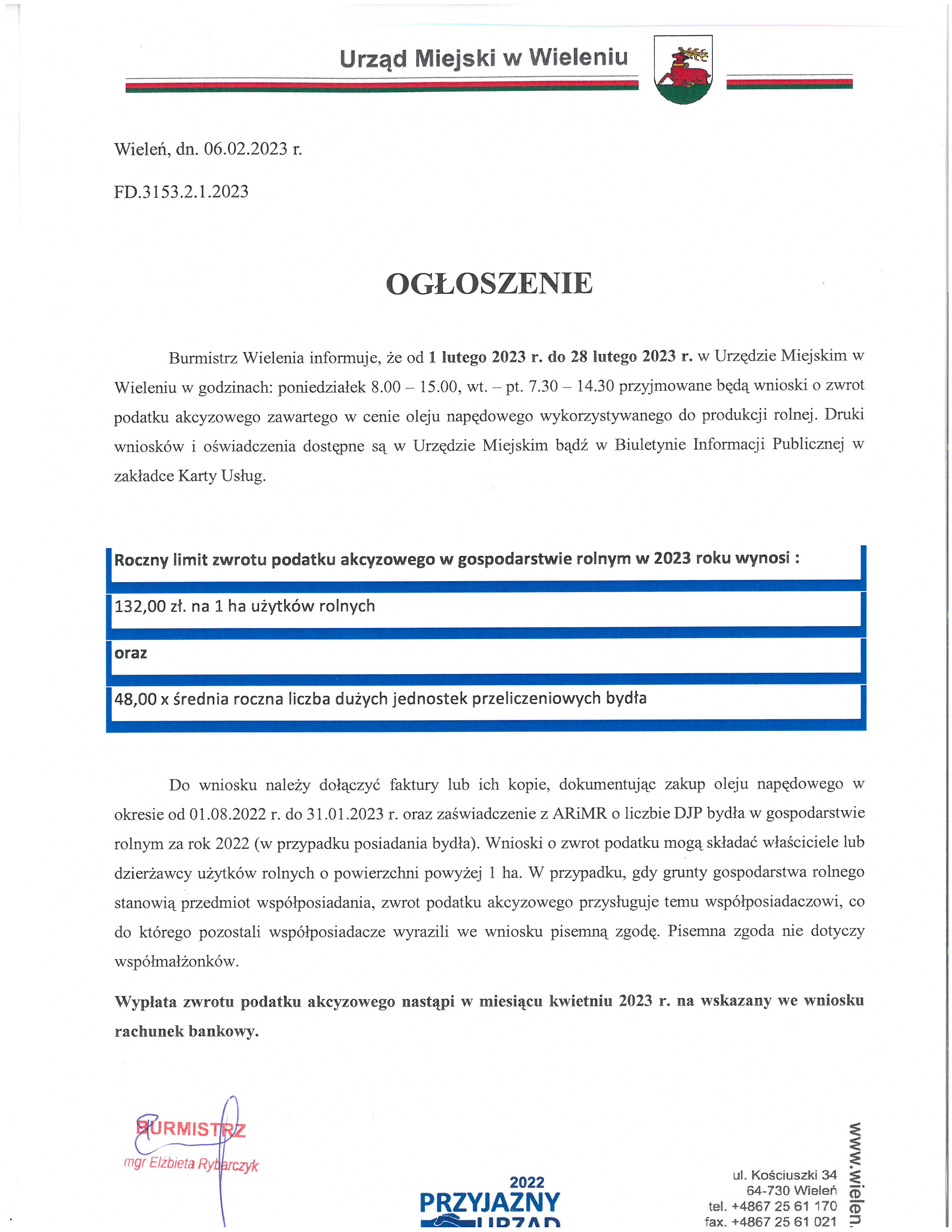 Ogłoszenie o naborze wniosków "Zwrot podatku akcyzowego zawartego w cenie oleju napędowego wykorzystywanego do produkcji rolnej"