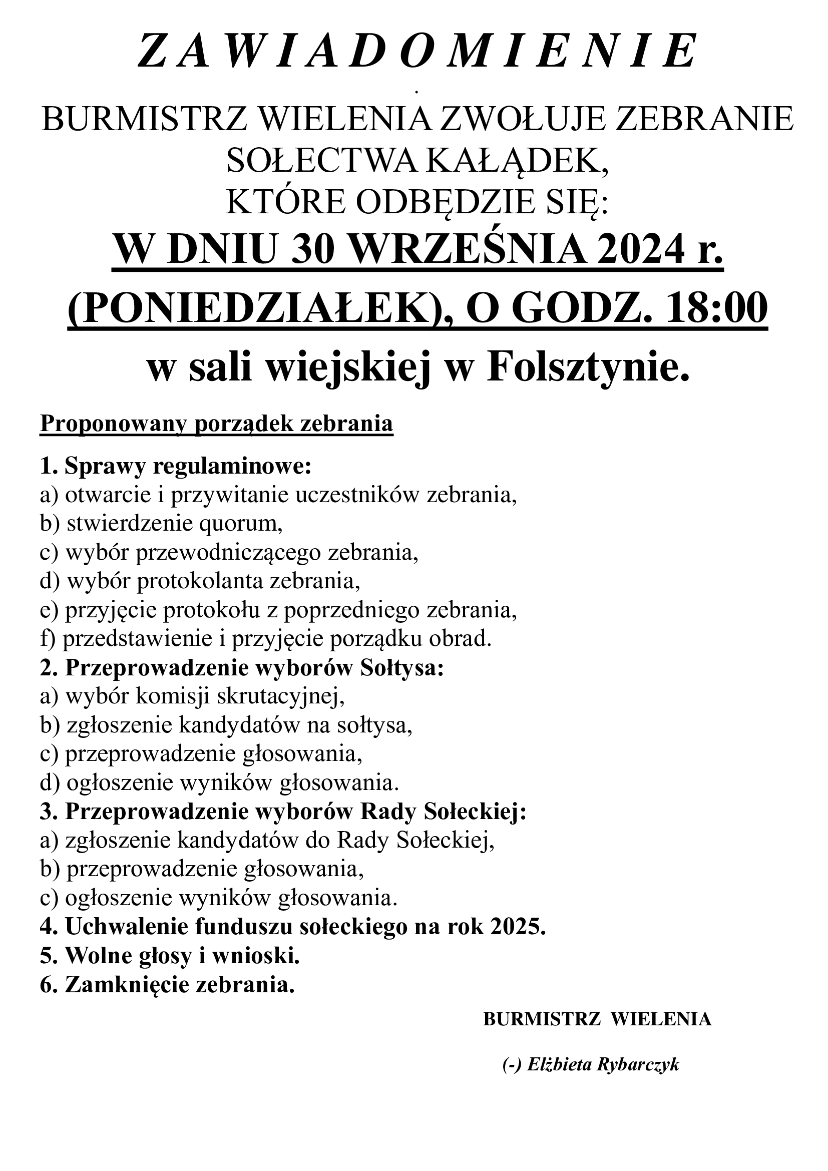 Zebranie Sołectwa Kałądek